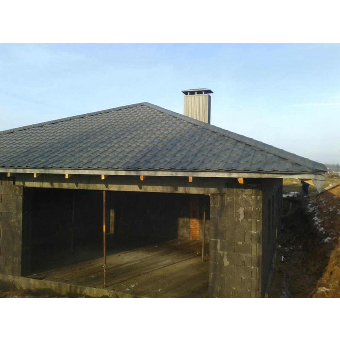 Металлочерепица Grand Line Kvinta Uno (Квинта Уно) 0,5 Atlas RAL 7024 Мокрый асфальт