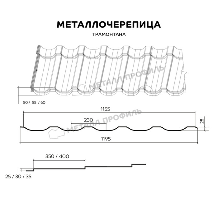 Металлочерепица Металл-Профиль Трамонтана-X 0,5 PURMAN® RAL 9005 Черный темный
