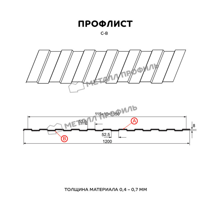 Профлист Металл Профиль С-8 0,45 Полиэстер RAL 9010 Чистый белый | B